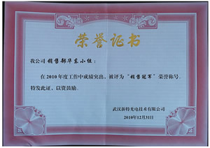 新特光電2010年度優(yōu)秀團(tuán)隊(duì)