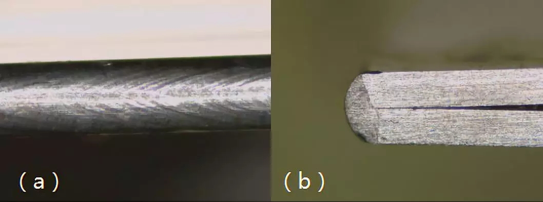 圖2(a)為焊縫正面,放大倍數(shù)45倍??梢钥闯?,半導體激光焊接杯口表面光滑、平整,滿足工藝要求,無需磨口處理。而氬弧焊對人員焊接技能要求較高,且焊接發(fā)黑、不平整,需要磨口處理。