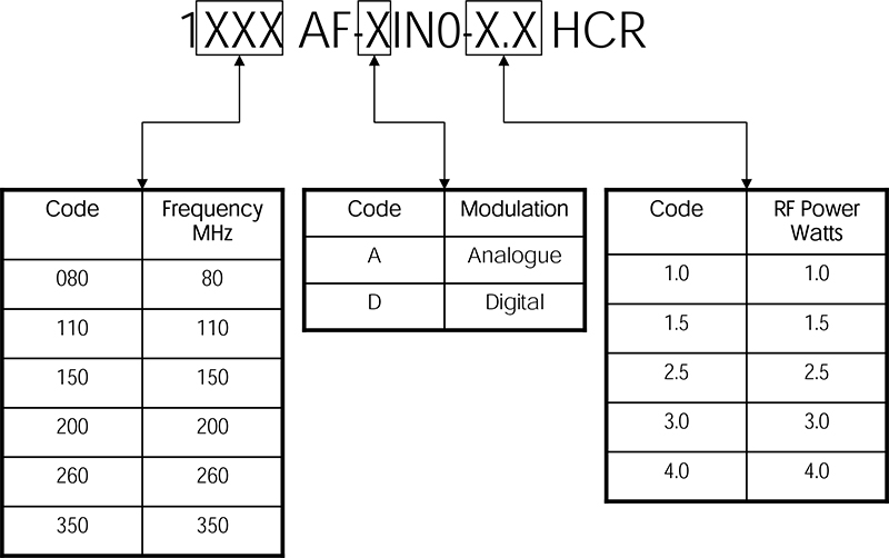 Yy ----- 射頻功率,單位W,50代表50W,75代表75W