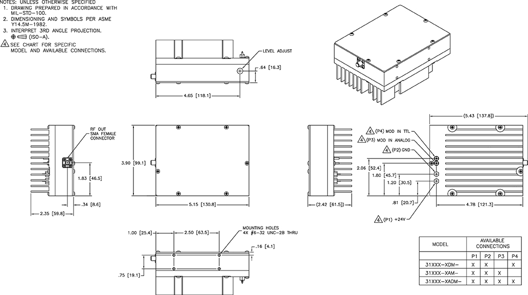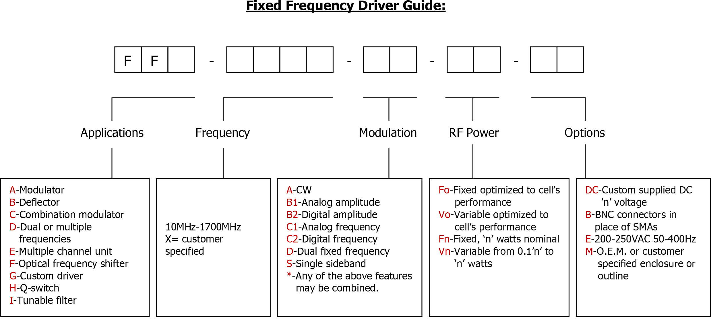 | A35xxx-S-1/50-p4k7u | 光纖Q、移頻器、調(diào)制器 | 40-300MHz | 0.1-5.0W | 固定單頻;模擬和數(shù)字調(diào)制 |