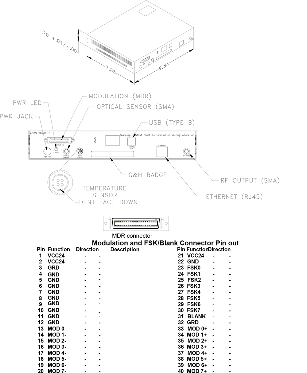 | 64020-200-2ADMDFS-A | 偏轉(zhuǎn)器、調(diào)制器、可調(diào)濾波器 | 20-200MHz | 2.0W | 可編程頻率;單通道DDS 、模擬和數(shù)字調(diào)制 |