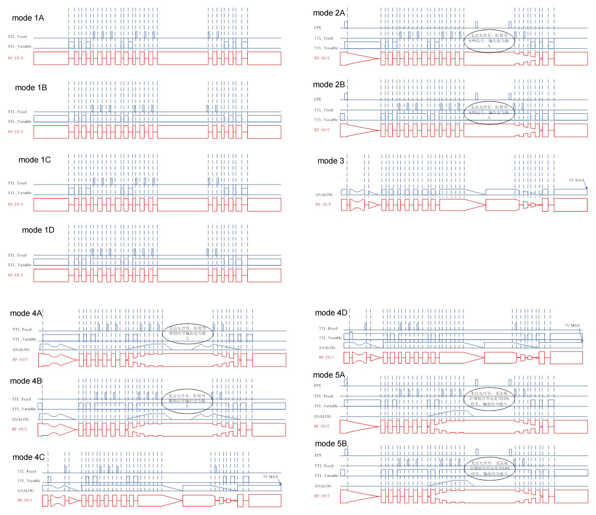 模式4A:模數(shù)混合模式、上升沿及高電平出光、不出光期射頻為最大、出光期射頻由ANALOG決定。