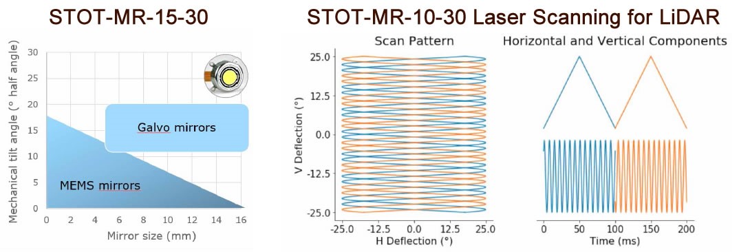 單個光學(xué)元件的2D光束偏轉(zhuǎn),可提供更大的光學(xué)掃描范圍和反射鏡尺寸