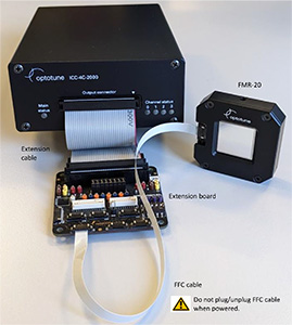 FMR-20 由 ICC-4C-2000 工業(yè) 4 通道控制器和 ICC-4C-2000 擴(kuò)展套件(適配器板)控制。一個 ICC-4C-2000 有四個輸出通道,支持兩個 FMR-20轉(zhuǎn)向鏡。